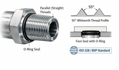 G Pipe Threads feature a parallel thread design, meaning the diameter of the thread remains constant along its length. The thread form uses a 55-degree Whitworth profile, which is distinct from many other hydraulic thread types.